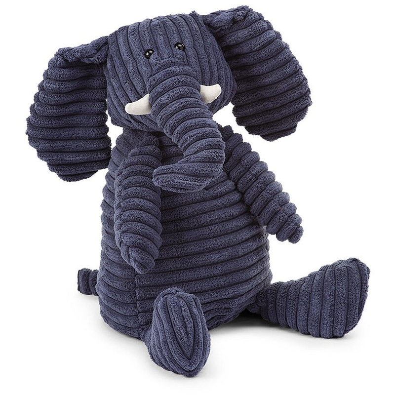 Long, striding walks away from all the noise – that?s what Cordy Roy Elephant enjoys! With the sun on his beautiful blue ears and a spring in his step, he likes to get out and about. From trunk to tail, this jubilant elephant?s covered in yummy-soft jumbo cord!