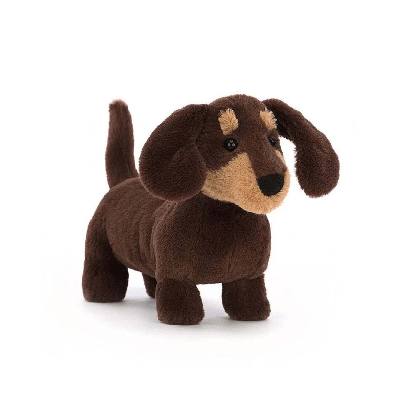 Tiny legs and a great big heart - that's Otto Sausage Dog! This intrepid pup is divinely dinky in dark chocolate fur with caramel patches. With waggly ears, a perky tail, golden eyebrows and sassy spirit, bright-eyed Otto's a playful little pal!Recommended
