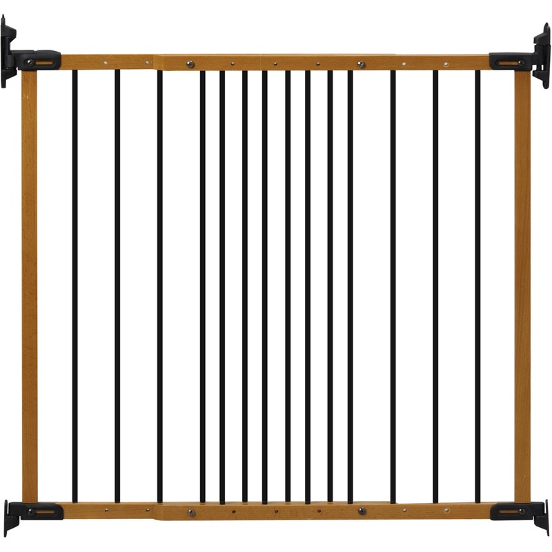 This safety gate is perfect for stairs when you need to mount one side on the wall and one side on a banister, but it can also be mounted in a hallway when the walls don?t line up. Hinge and latch side hardware can be mounted on an angled surface. Easy one-hand adult operation quick-release hardware allows the gate to be easily removed when not needed. Made from furniture-grade hardwood and strong tubular steel, the unique material design will accent any home decor while providing safety.