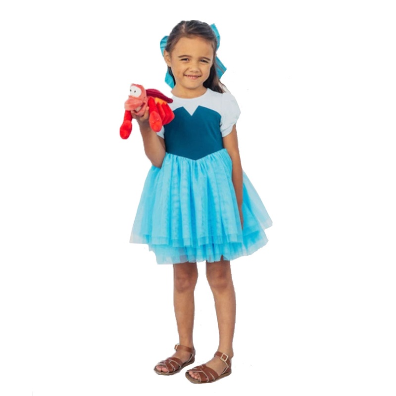 Bow is included in sizes 3 through 12. Diaper cover is included in sizes 2 and under. Red plush crab not included. Our Kiss the Girl dress is made of 95% cotton and 5% elastane. It's ultra comfortable and has a stretchy knit lining.These character dresses