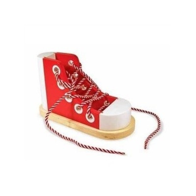 I can do it myself! Few things will give your child more satisfaction than mastering shoe-lacing and -tying skills. This wooden high-top sneaker will make practicing enjoyable and help your child reach the developmental milestone of learning to tie shoes.
