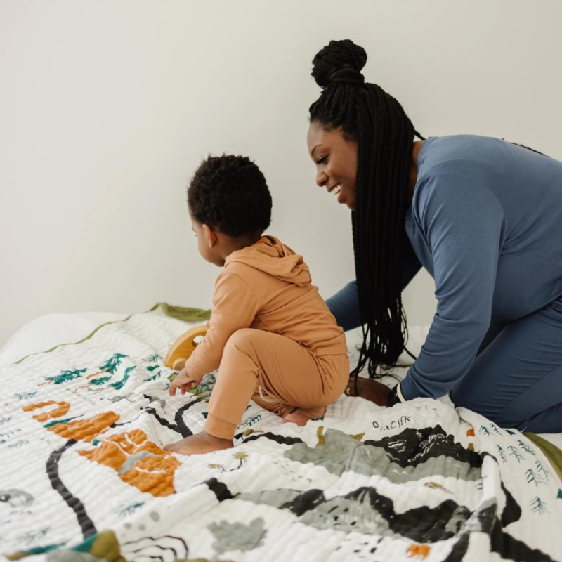Stay cozy and stylish with our Large National Parks Throw Blanket from Clementine Kids. Perfect for twin beds or lounging on the couch, this blanket showcases adorable butterfly designs on one side and a warm mustard yellow on the other. Your big kid will love it!
