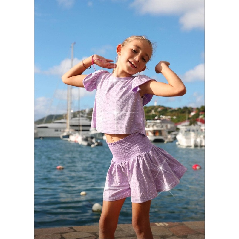 Lavender Crystal Ruffle Short Set 2