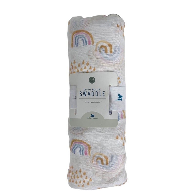 Little Unicorn Deluxe Muslin Swaddle, Rainbows and Raindrops
