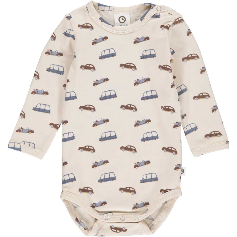 This organic long sleeve bodysuit from Msli has an all-overcars print on acream background.Snaps at the shoulder andcrotch made for easy dressing and diaper changes. Made with a nice soft and stretchy organic cotton that keepsits shape wash after wash. Pai