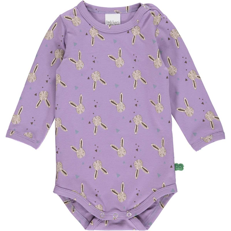 This organic long-sleeve bodysuit from Fred's World has an all-over rabbit print on an orchid-colored background. Snaps at the shoulder and crotch make for easy dressing and diaper changes. Made with a nice soft and stretchy qualitythat keeps the shape was