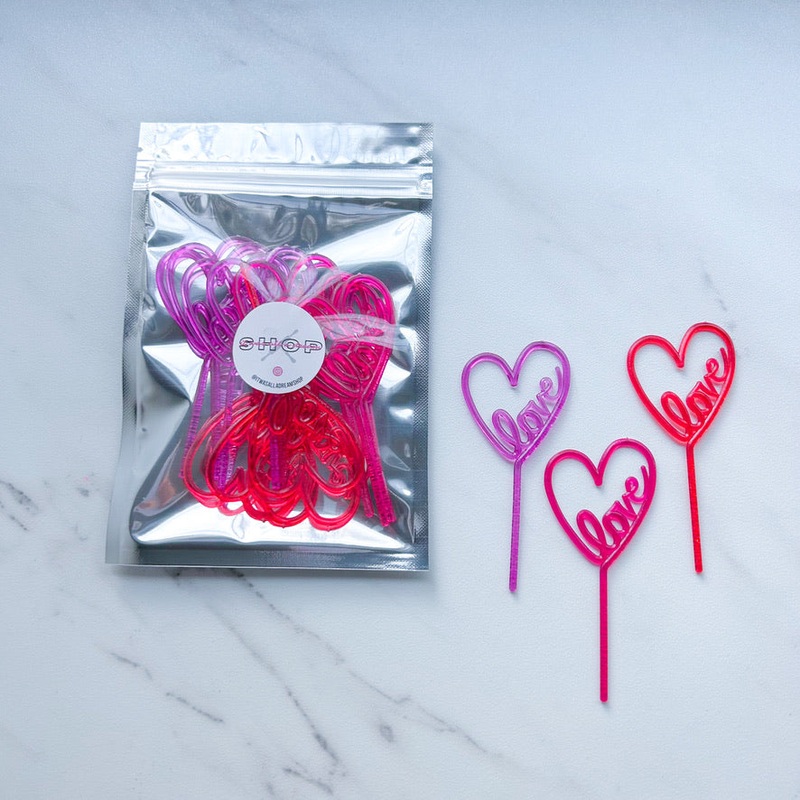 Electrify your desserts with translucent neon pinks, reds and purples! Customers will love the modern Valentine spin on a neon sign favorite.Dimensions: