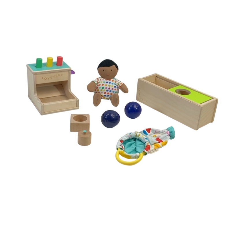 The Thinker Kit is designed for ages 11-12 months and is set up to start guiding children in imaginative play! With great items like a first doll, introductory puzzles, and more. This kit of toys will get your little problem solver thinking.