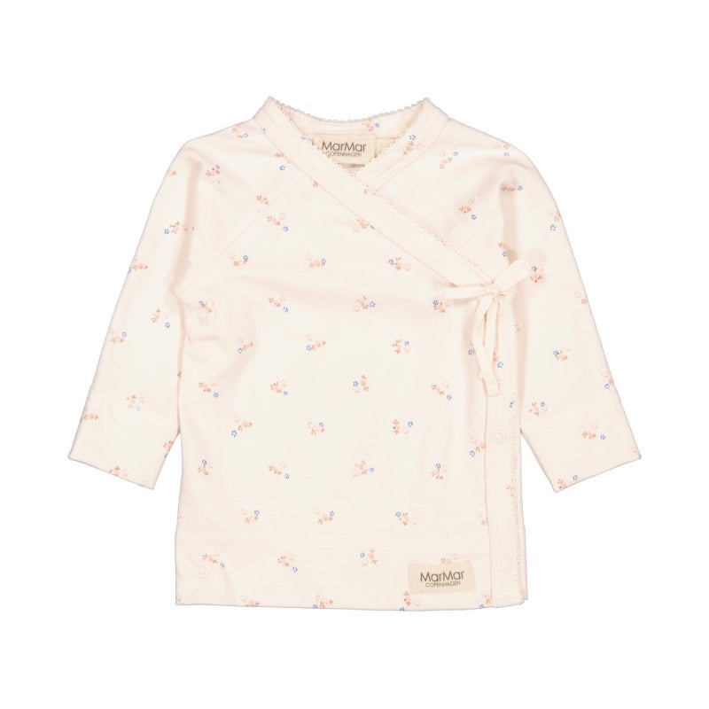 marmar copenhagen long sleeve tuti wrap top in anemone print. the top features push buttons for closure and easy dressing.