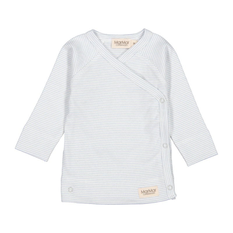marmar copenhagen long sleeve tuti wrap top in fresh air stripe. the top features push buttons for closure and easy dressing.