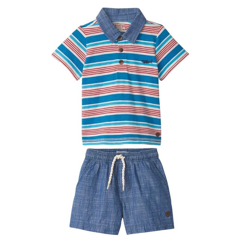 Give him a polished yet playful look with Mediterranean Stripes Polo Set!