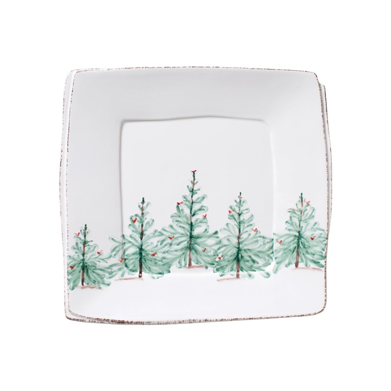 Inspired by Italian lifestyle, history, and culture, VIETRI uses the highest-quality clays from the soil of Italys countryside to produce beautiful, everyday items for your home. Hand-painted details, quality glazes, and fine craftsmanship help you savor the moments spent at your table and thecompany of those who join it. Crafted in a dishwasher-safe material, andhand-painted with fir trees and red birds, the Melamine Lastra Holiday series makes a delightful addition to any seasonal tablescape. The Melamine Lastra Holiday Square Platter provides a sophisticated, but charming vessel for serving everything from fresh roasted poultry, to grains, to desserts.