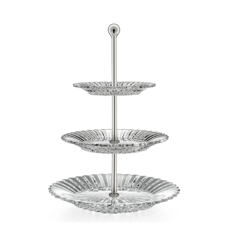 Founded in 1765, Baccarat is renowned throughout the world for the remarkable quality and timeless design of its glassware. With master blowers, cutters, engravers, and gilders honing their techniques to perfection, Baccarat introduces you to the finest crystal and an entire world of excellence.Designed by Mathias for Baccarat,the Mille NuitsPastry Stand features stunning framework.The decorative crystal plates and the varnished silver-plated metal stand are both elegant and functional.