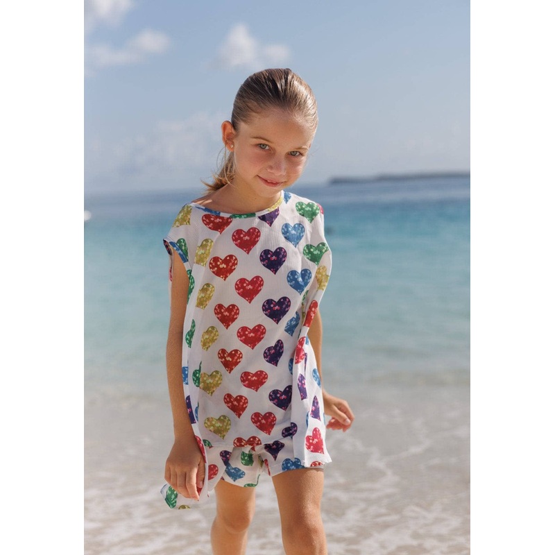 - Bursting with vibrant rainbow-colored heart prints, this tank and shorts set brings playful charm to everyday wear.