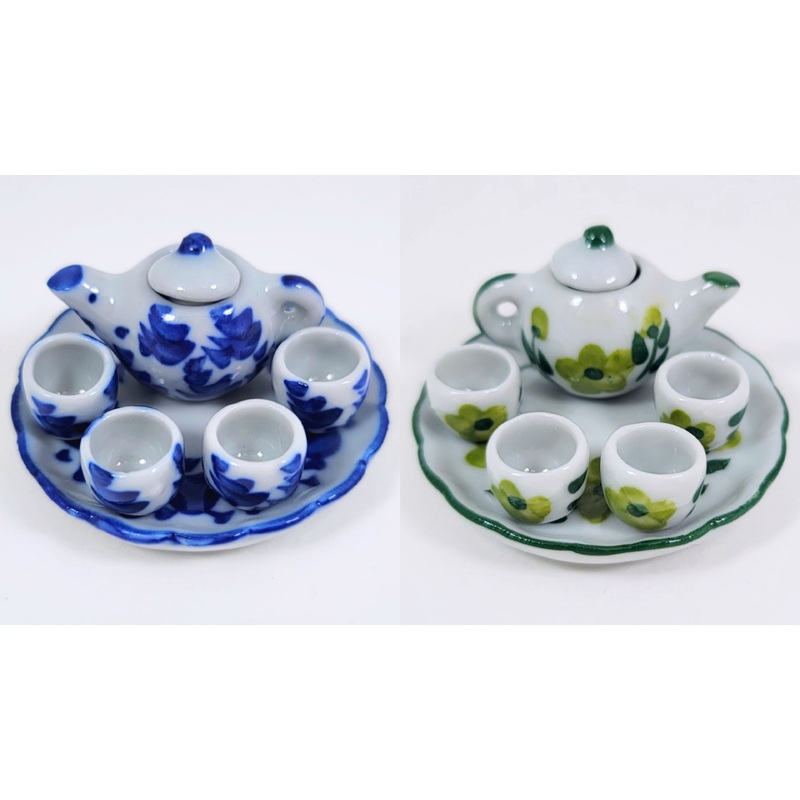 Please let us know if you would prefer your tea set be blue or green in the “Special Instructions for Seller” section of your order, and we will do our utmost to fulfill your request while supplies last.