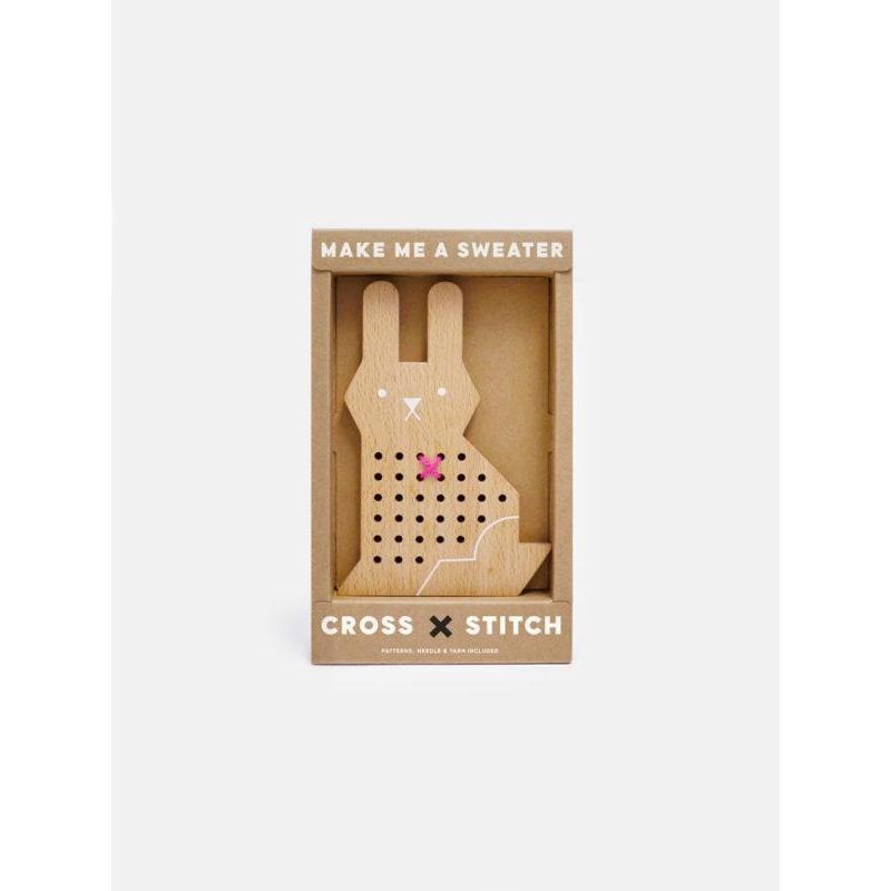 This cutebunny needs a sweater! Can you help?A great project for cross stitch beginners!Cross stitching is a super fun craft activity for kids. Help make sweaters & outfits for animal friends with your cross stitching skills.Comes complete with wooden rabb