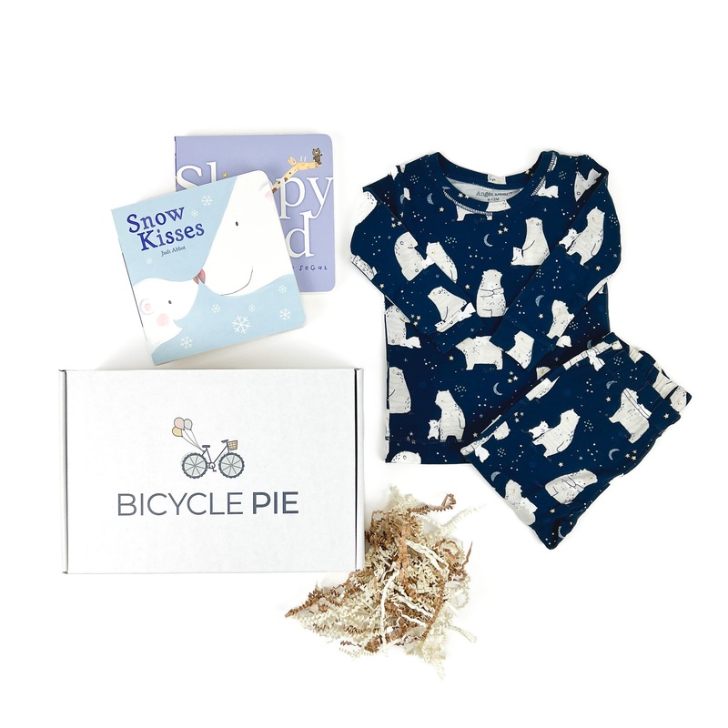 This bedtime-inspired gift set comeswith ourNight Sky pajama set from Angel Dear, and 2 perfect little board books for bedtime reading: "Snow Kisses"and "Sleepyhead."Thisgift collection comes safely stored with crinkle paper filler and boxed in our own rea