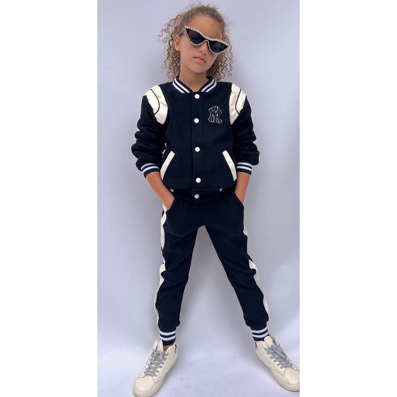 Description:Elevate your sporty style with the "NY Bomber Joggers Set," featuring a chic bomber jacket and matching jogger pants.Crafted with a classic black-and-white color palette and stripe accents for a timeless, athletic look.Perfect for casual outing