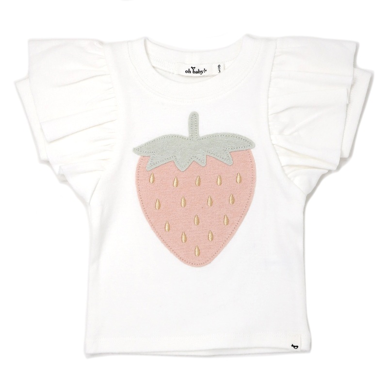oh baby! Butterfly Short Sleeve Cotton Tee – Strawberry – Cream