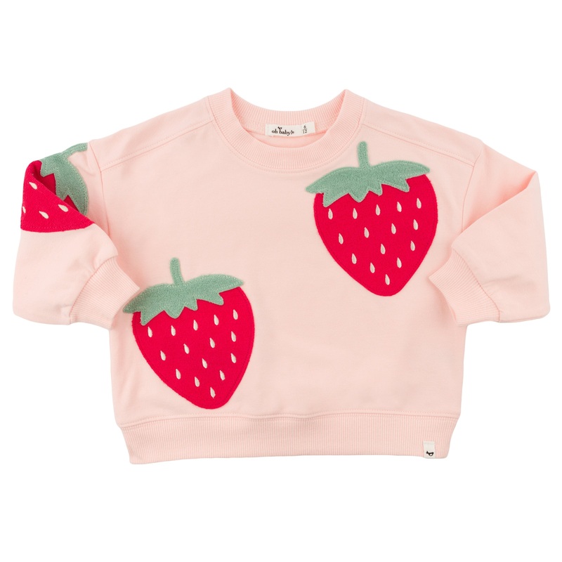 oh baby! Charlie Sweatshirt – Strawberries Appliques – Pale Pink