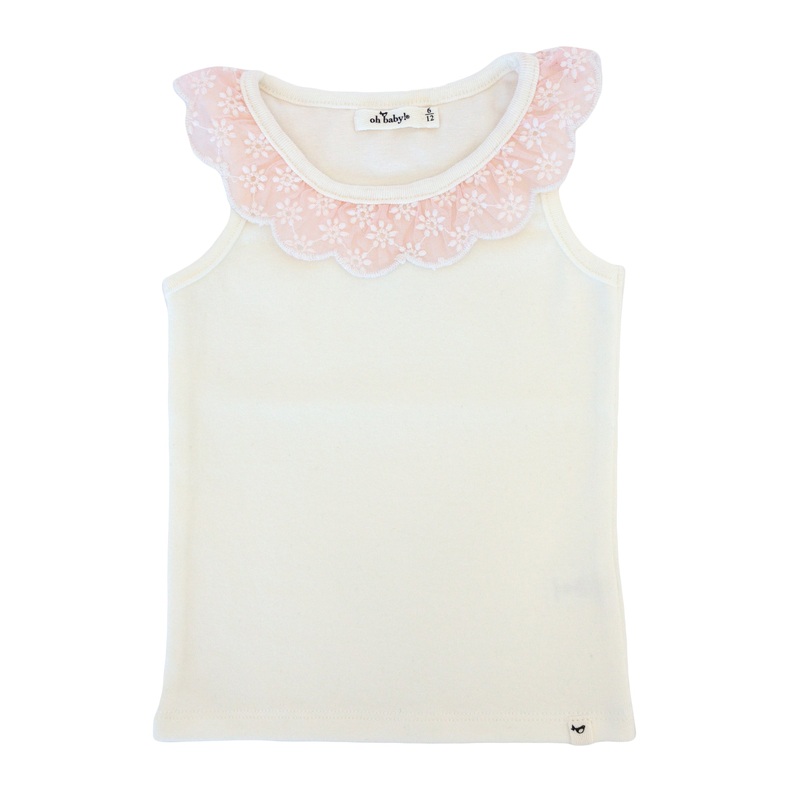 oh baby! Embroidered Daisies Collar Baby Rib Tank – Cream