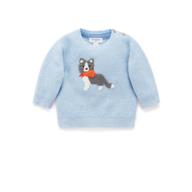 Our On the Farm Jumper is cosy and soft, perfect for the cooler months. Featuring a sweet, fluffy farm animal applique on the front and ribbed trims to keep out chills. Made from an organic cotton wool blend yarn, this warm piece looks cute paired with our On the Farm Leggings and Beanie. Fluffy chenille farm animal applique Ribbed trims on the neckline, hem and cuffs to keep out chills Wood look buttons at the neck for easy dressing Made from 92% Organic Cotton/8% Wool