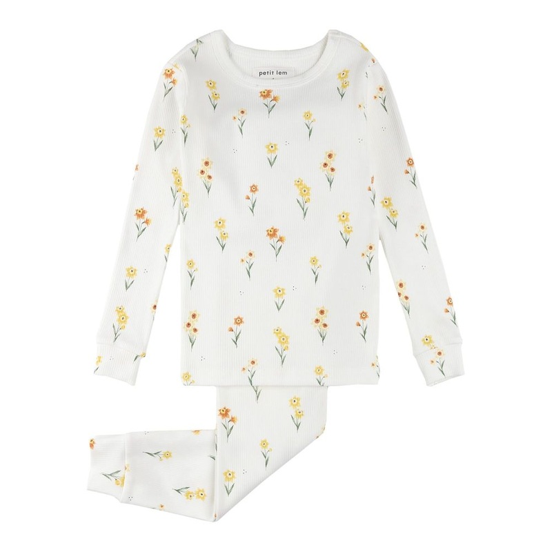 Petit Lem 2-Piece Organic Cotton Pajama Set in Flowers Print