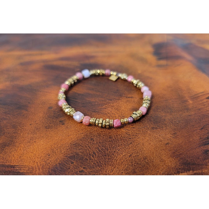 Here’s a bracelet you can count on for a perfectly styled look. Golden stainless steel and faceted pink and blush stone beads in varying sizes and shapes are strung on elastic cord for easy wearing, whether solo or stacked with other bracelets. Sourced from the French market, your purchase of this versatile bracelet supports the rescue, healing, and empowerment of women, men, and children all over the world who have been victims of exploitation and abuse, and contributes to their hopeful, sustainable future.