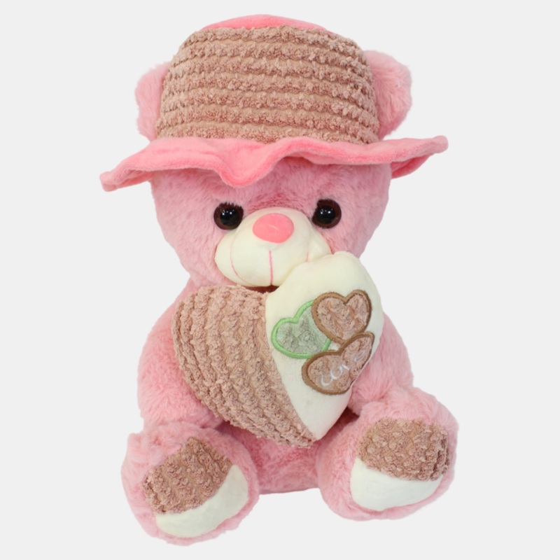 A cuddly companion full of love! This adorable pink teddy bear, dressed with a cute hat and holding a plush heart, is perfect for snuggles, gifting, and spreading warmth.Features:Made from ultra-soft, huggable plush materialCute hat and heart design for a