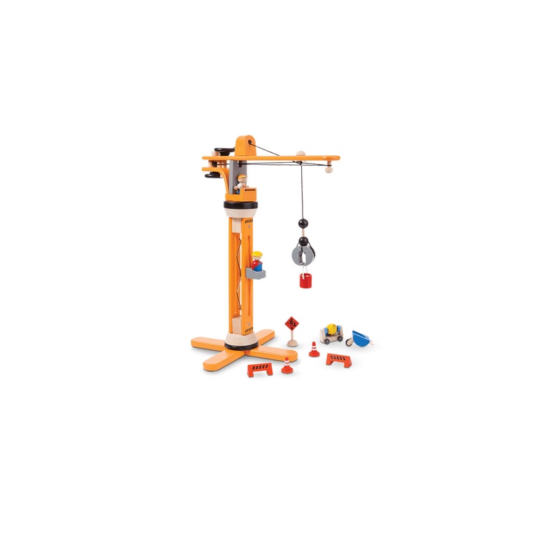 - The PlanToys Crane set comes with a crane, construction sign, street hazard signs, concrete mixer, and 2 figures of a foreman and worker.