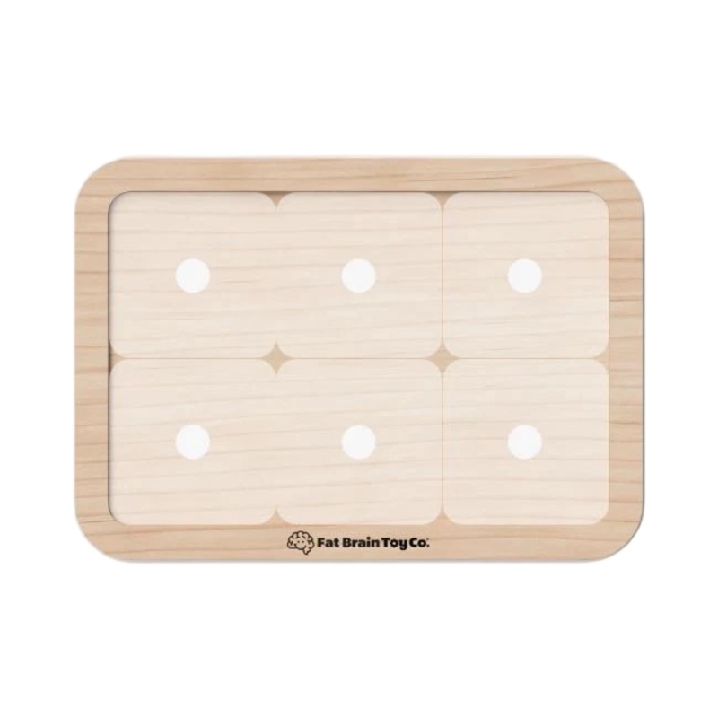 Grab the board (sold separately) and then choose from the unique tiles (available in packs of 3). There’s a set of gears that spin together, textured buttons that squeak, colorful balls that roll through a maze, a dial that clicks from one to ten… They all magnetically snap onto the board any way you want. Or, you can just throw a few in the diaper bag, or even stick them to the fridge! The classic activity board becomes more versatile and more open-ended with PlayTab.