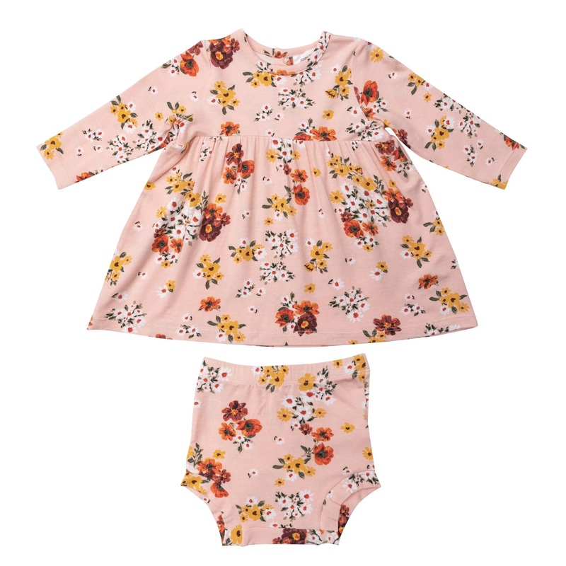 Its no surprise why Angel Dear is one of our go-to baby and gift brands!This cozy floral dress set includes the matching bloomers. Snaps at the neck allow for easier changes.Materials: 95% viscose from bamboo, 5% spandex.Care: machine wash gentle cycle, tu