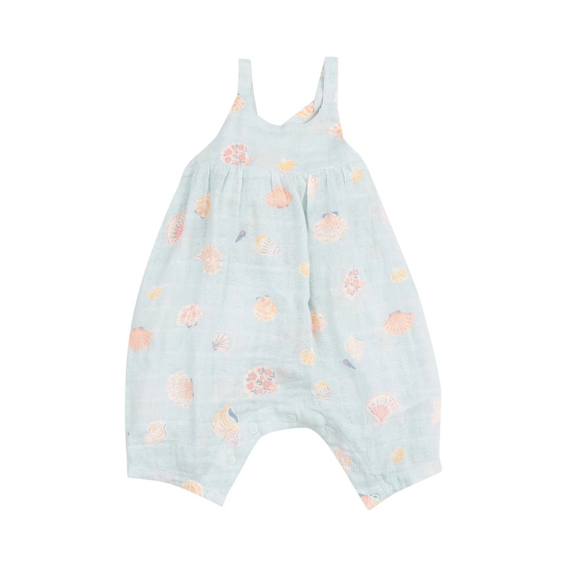Dive into summer with the Pretty Seashells Tie-Back Romper from Angel Dear! This muslin romper features a charming seashell print and a sweet tie-back design, perfect for those sunny days. Don't miss out on adding this playful and irresistible piece to you