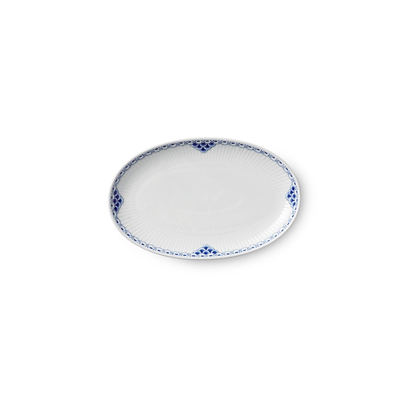 Founded under the reign of Danish Dowager Queen Juliane Marie in 1775, Royal Copenhagen is one of the oldest and most respected brands in the world. Crafted with superior materials and held to the highest standards, their fine porcelain is meant for everyday use. The Princess series is romantic with a light, airy touch. Originally designed as a tea service in the 19th century, the pattern was first produced as dinnerware a century later in 1978. With borders encircled by delicate lace, its hand-painted fluted pattern whispers a resemblance to Blue Fluted dinnerware. The Princess Oval Asiette Dish is adorned with hand painted lace and delicate fish scale decorations providing a romantic style. The small dish makes for a classic table setting, whether being used for bread or as a small serving dish.