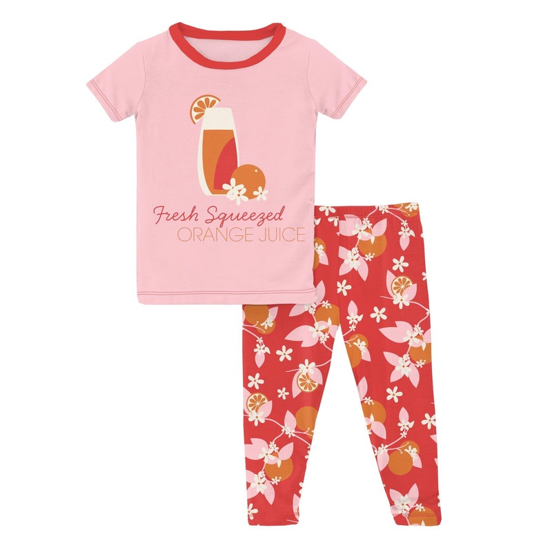 PRINT SHORT SLEEVE GRAPHIC TEE PAJAMA SET – POPPY ORANGE BLOSSOM