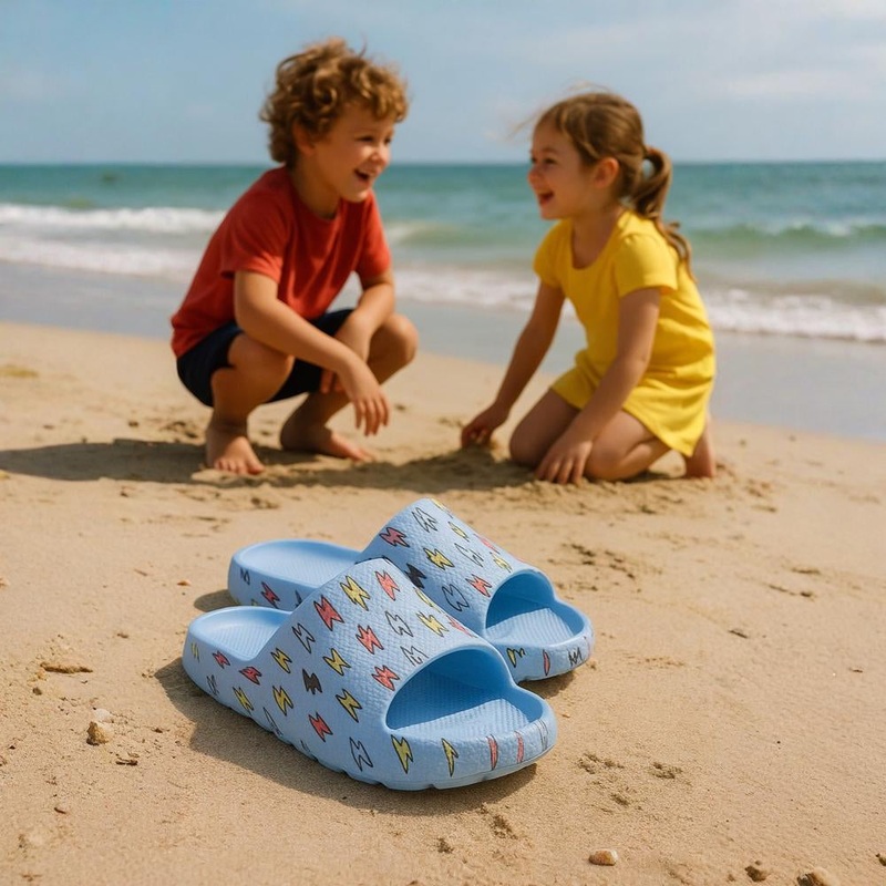 Slip into comfort and fun! These Baby Blue rubber slippers are perfect for little feet on warm, sunny days.