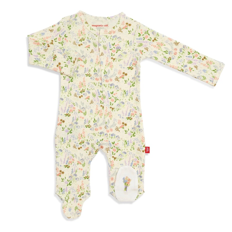 A soft, stylish all-day and all-night wardrobe staple with smart magnetic fasteners that makes changing time easy as 1, 2, 3. With our no over-the-head design, simply open the outfit, insert baby, and BOOM, DONE! - the footie practically closes itself. Mac