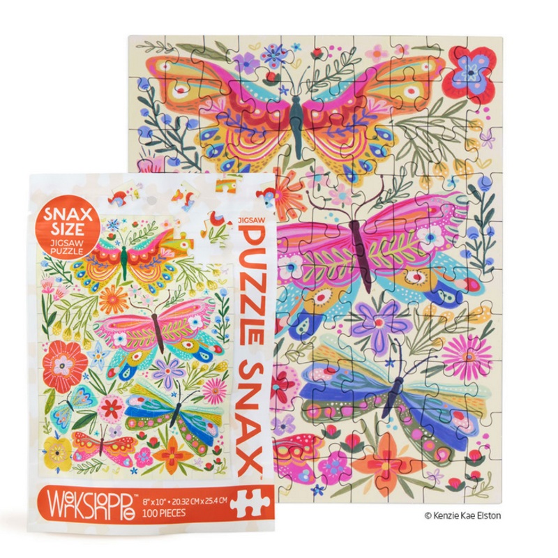 Art by Kenzie Kae ElstonPerfect for on the go, or frame and hang!100piece jigsaw puzzleAssembled puzzle size:205 x 255mmESKA 100% recycled board & non-toxic vegetable-based inkRibbon cut piecesPackage: resealable pouch -155 x 205mmRecommended age: 7+ years