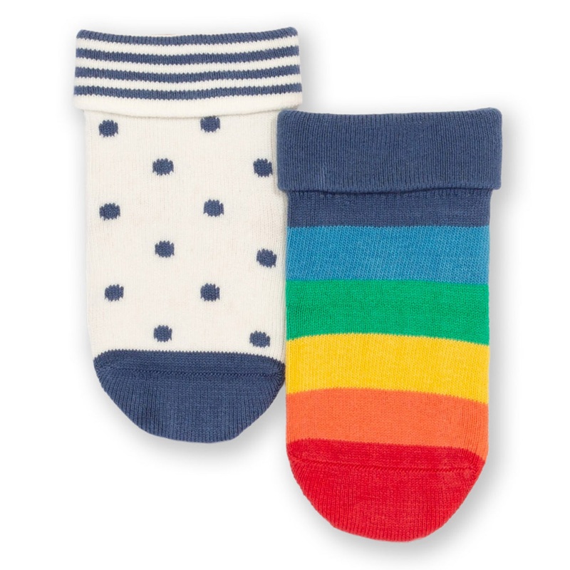 Keep little feet cozy and comfy. This two-pack sock set from Kite features arainbow stripe pair and anavy dot pair.Oh-so-soft and with turn-down tops, they finish off any outfit and make a great little gift idea, too. 90% organic cotton 8% polyamide 2% ela