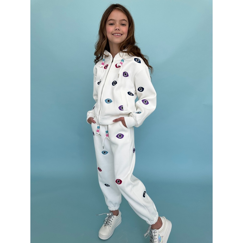 • Unique evil eye design in vibrant colors, adding a touch of style and personality to a comfy jogger set.