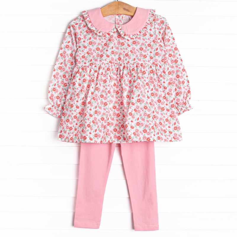 Raspberry Blooms Legging Set, Red