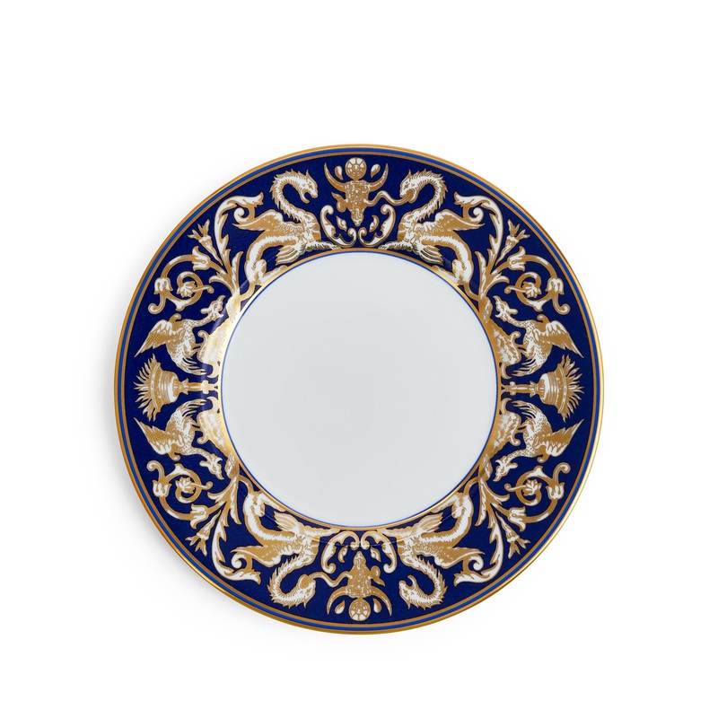 For over 260 years, Wedgwood has produced timeless, eclectic stoneware and china that has graced the tabletops of kings, queens, and some of the finest dining rooms in the world. From its factory inBarlaston, England, the brands signature dishware and household items are thrown, modeled and decorated by artisans who spend a lifetime mastering their craft. Enliven your tabletop and every meal with the gold-rimmed and richly patterned,Renaissance Goldcollection.Callingout to timeless quality and sophistication, the Renaissance Gold Accent Salad Plate 9″ Scroll is an especially elegantwaytotoservesides, desserts, andof course,salads.