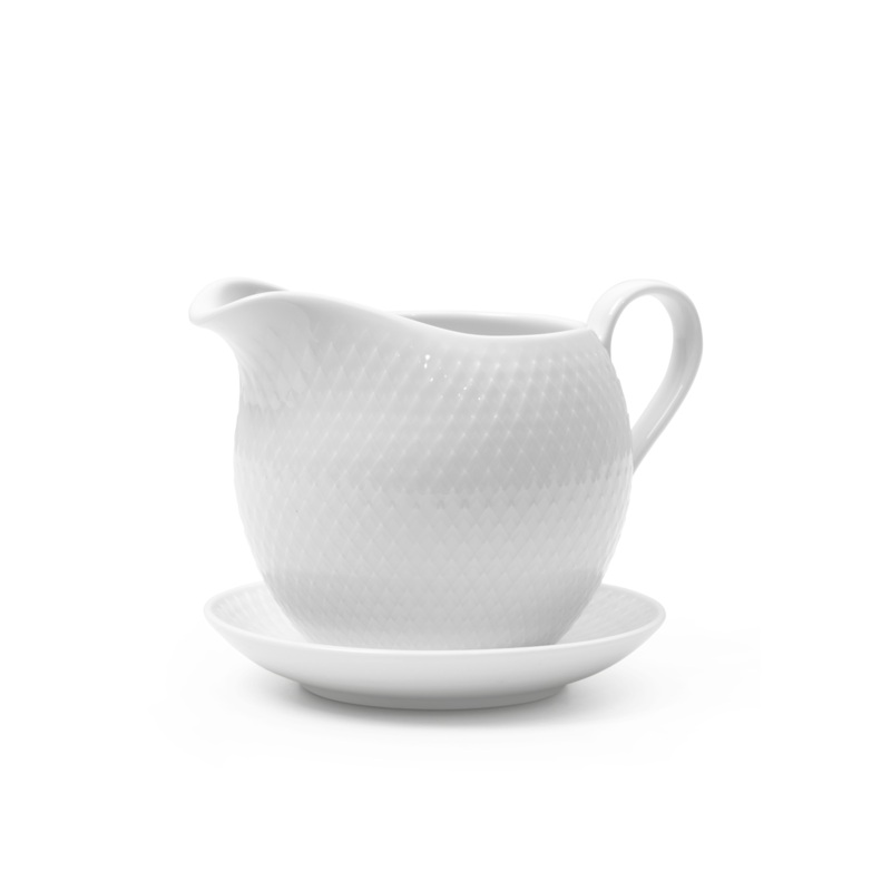 Lyngby is a Danish design company dedicated to rediscovering and recreating applied arts from Scandinavian heritage. What started with the relaunching of a classic 1936 Lyngby vase has grown into reviving all of the designs with contemporary glazing that adds a beautiful texture and effortless style to any room. This beautiful gravy boat and saucer set is part of the Rhombe collection and features a playful rhombus pattern discovered in the brands archive from 1961. A user-friendly math makes pouring easy and stylish.