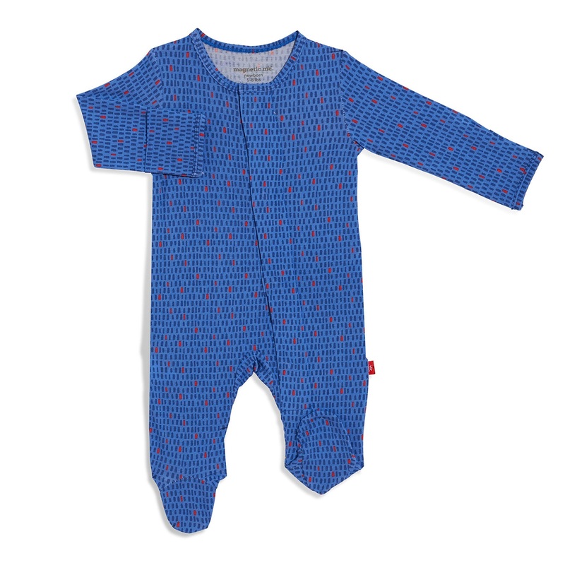 A soft, stylish all-day and all-night wardrobe staple with smart magnetic fasteners that makes changing time painless. With our no over-the-head design, simply open the outfit, insert baby, and BOOM, DONE! – the footie practically closes itself. Machine wash as directed.