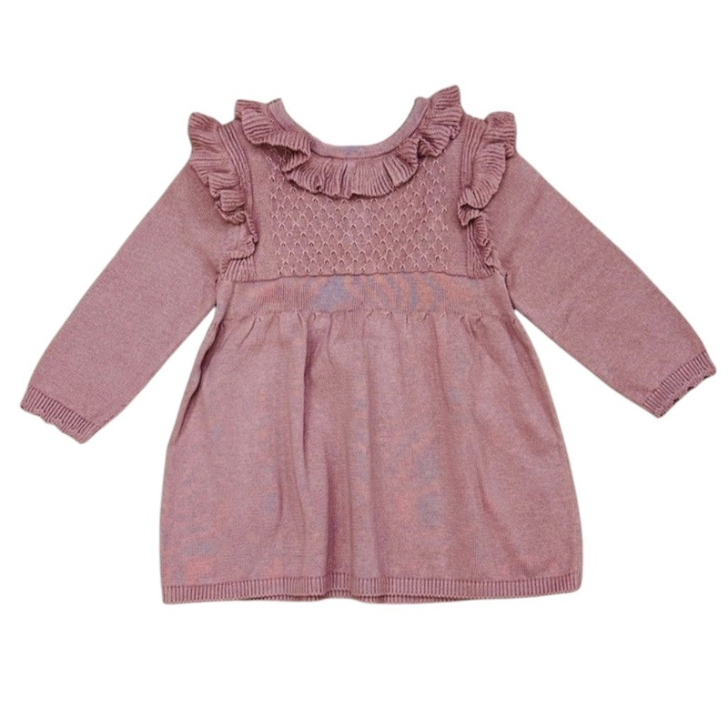 MLP310173306Ruffle Collar Pointelle Baby Sweater Dress