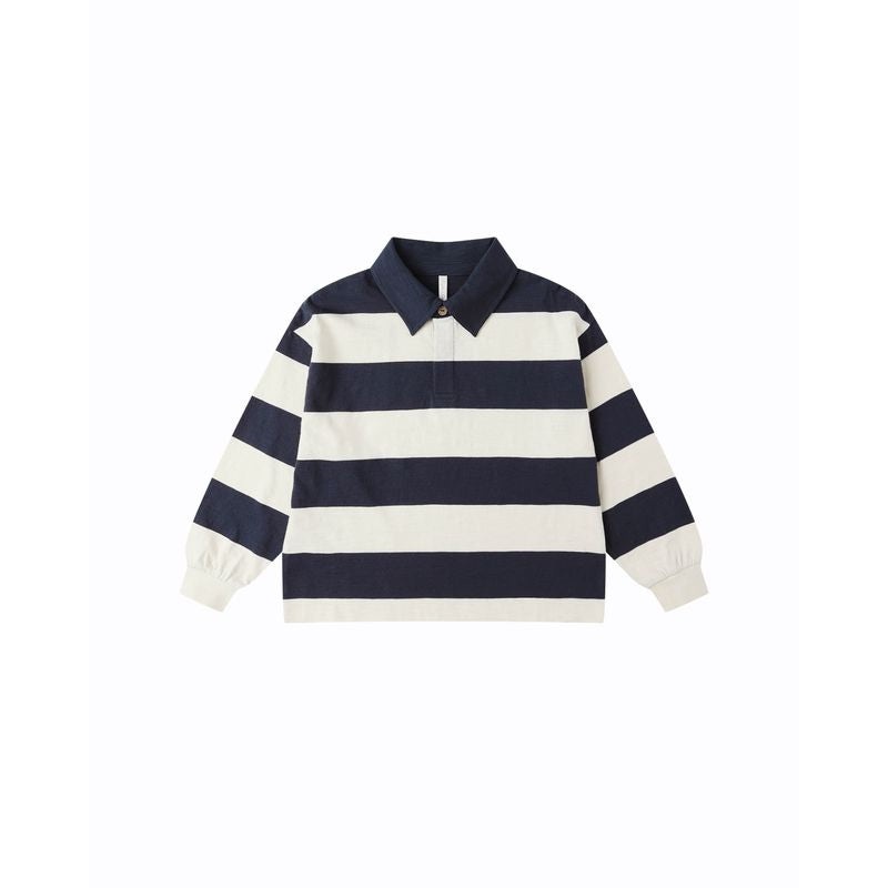 Our long sleeve Rugby Polo brings effortless athletic style with bold rugby stripes, a classic collar, and coconut button detailing.Featuring our 'navy stripe' print on our 'navy' hue.Care: Machine wash cold. Tumble dry low.Made of 100% cotton.