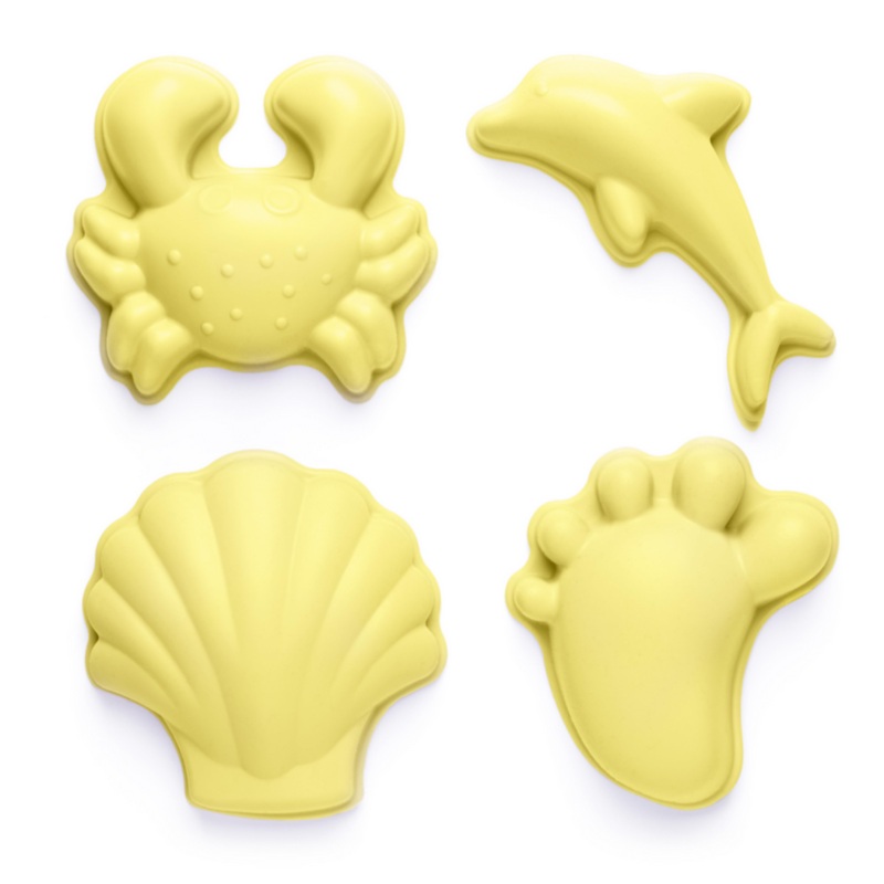 Leave a footprint in the sandA set of 4 super soft 100% silicone sand moulds, all wrapped up in a net bag.Hours of fun and amusement from making simple shapes in the sand, mud or soil.Fully eco-friendly, recyclable and reusable. Squash the Scrunch-moulds i