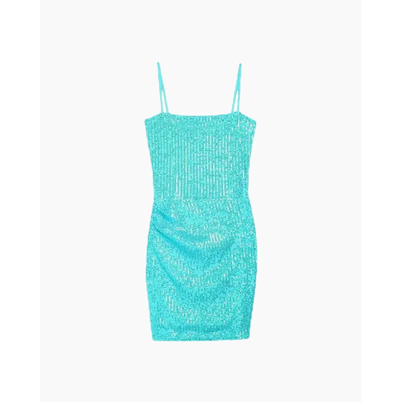 Glam up your night with this Sequin Bodycon Dress. Crafted from lightweight stretch sequin fabric, adjustable straps, and a gathering detail at the right hip, you’ll be ready to wow the evening!