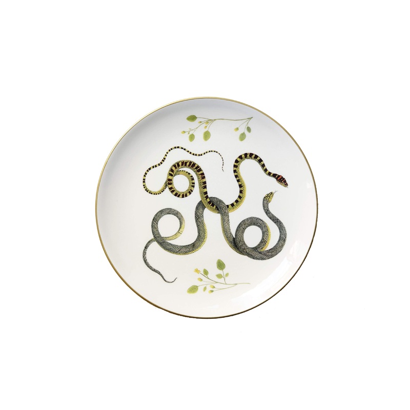 Illustrated snake design and gilded edge. Ceramic. Handcrafted in Italy.