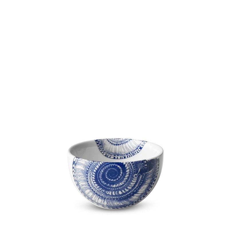 Caskata makes dinnerware for those who love to entertain. That joie de vivre and celebratory atmosphere makes its way into each piece of the brands blend of classic and contemporary designs, recognizable by their creative patterns,enduring quality,and light touch. The Shell series features collections of brilliant blue, delicatelydetailed shells,with the tide bringingthemacross the surface of creamy, premium porcelain. The Shells Snack Bowl isideally sized to servejust a fewof yourfavorite snacks: a handful of nuts, some olives, or a sweet treat (or five).